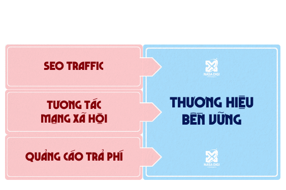| Mục tiêu trọng tâm | Doanh thu ngắn hạn, traffic, tương tác | Xây dựng thương hiệu, kết nối sâu sắc, tăng trưởng bền vững |