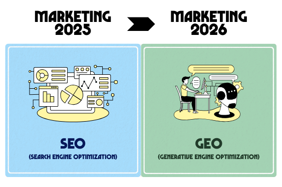 Một trong những thay đổi quan trọng nhất năm 2026 là sự chuyển dịch từ SEO (Search Engine Optimization) sang GEO (Generative Engine Optimization) – tối ưu hóa cho công cụ tìm kiếm AI.