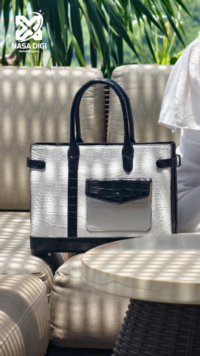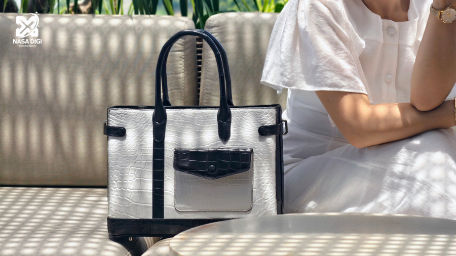 - Tone màu chủ đạo: tông trung tính pha đậm (da nâu, đen, be, cam đất) để làm nổi bật chất liệu da cá sấu