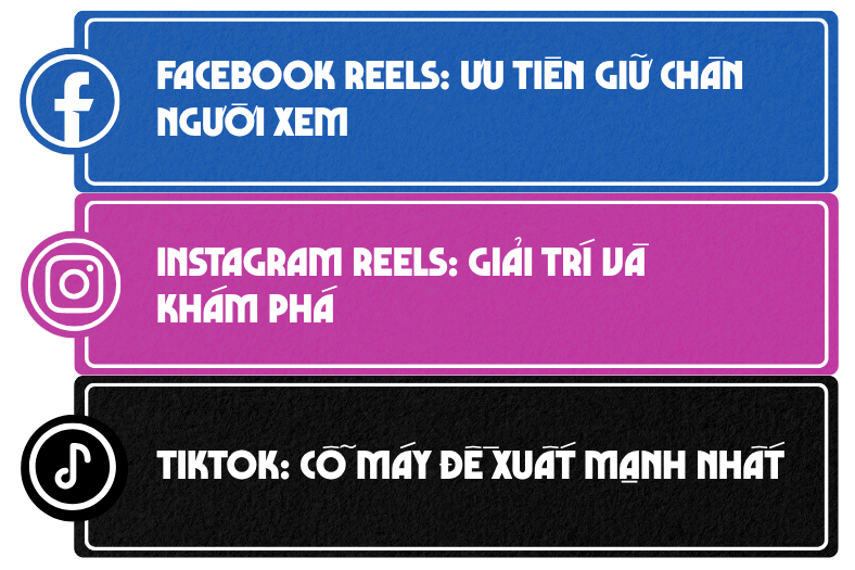 | Facebook Reels | Tập trung vào nội dung gây cảm xúc, kích thích bình luận và chia sẻ |