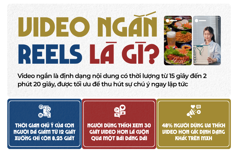 Video ngắn là định dạng nội dung có thời lượng từ 15 giây đến 2 phút 20 giây, được tối ưu để thu hút sự chú ý ngay lập tức .