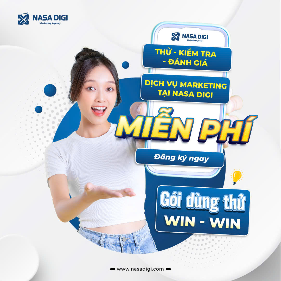 Đăng ký trải nghiệm marketing miễn phí cùng gói Win – Win tại NASA DIGI từ 14/07 – 14/08/2025. Tham khảo chi tiết gói dùng thử để tận dụng cơ hội tiếp cận dịch vụ chuyên nghiệp mà không tốn chi phí.